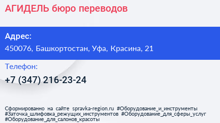 АГИДЕЛЬ, бюро переводов по адресу 450076, Башкортостан, Уфа, Красина, 21 в дальнейшем Организация, размещена в следующих категориях: