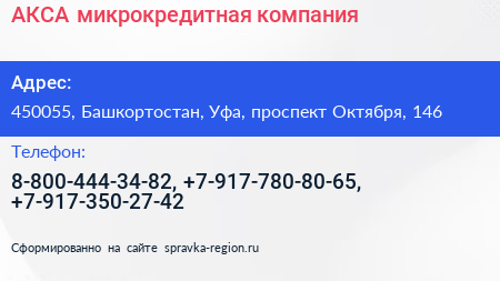 АКСА, микрокредитная компания по адресу 450055, Башкортостан, Уфа, проспект Октября, 146 в дальнейшем Организация, размещена в следующих категориях: