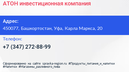АТОН, инвестиционная компания по адресу 450077, Башкортостан, Уфа, Карла Маркса, 20 в дальнейшем Организация, размещена в следующих категориях: