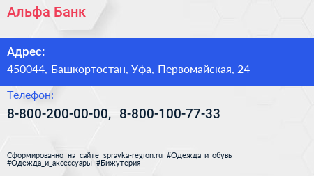 Альфа-Банк по адресу 450044, Башкортостан, Уфа, Первомайская, 24 в дальнейшем Организация, размещена в следующих категориях: