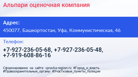Альпари, оценочная компания по адресу 450077, Башкортостан, Уфа, Коммунистическая, 46 в дальнейшем Организация, размещена в следующих категориях: