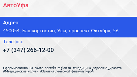 АвтоУфа по адресу 450054, Башкортостан, Уфа, проспект Октября, 56 в дальнейшем Организация, размещена в следующих категориях: