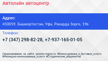 Автолайн, автоцентр по адресу 450059, Башкортостан, Уфа, Рихарда Зорге, 19в в дальнейшем Организация, размещена в следующих категориях: