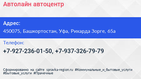 Автолайн, автоцентр по адресу 450075, Башкортостан, Уфа, Рихарда Зорге, 65а в дальнейшем Организация, размещена в следующих категориях: