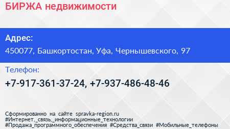 БИРЖА недвижимости по адресу 450077, Башкортостан, Уфа, Чернышевского, 97 в дальнейшем Организация, размещена в следующих категориях: