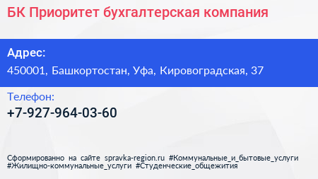 БК Приоритет, бухгалтерская компания по адресу 450001, Башкортостан, Уфа, Кировоградская, 37 в дальнейшем Организация, размещена в следующих категориях: