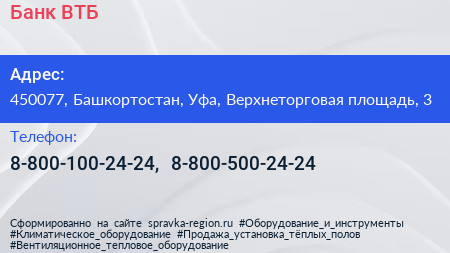 Банк ВТБ по адресу 450077, Башкортостан, Уфа, Верхнеторговая площадь, 3 в дальнейшем Организация, размещена в следующих категориях: