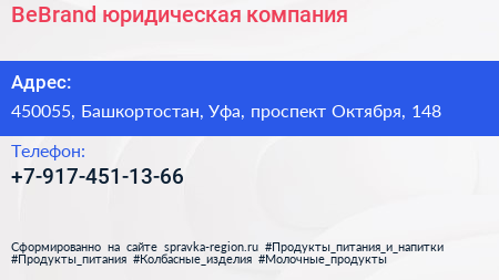 BeBrand, юридическая компания по адресу 450055, Башкортостан, Уфа, проспект Октября, 148 в дальнейшем Организация, размещена в следующих категориях: