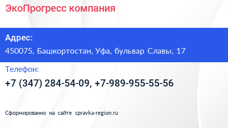 ЭкоПрогресс, компания по адресу 450075, Башкортостан, Уфа, бульвар Славы, 17 в дальнейшем Организация, размещена в следующих категориях: