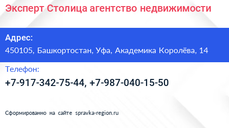 Эксперт-Столица, агентство недвижимости по адресу 450105, Башкортостан, Уфа, Академика Королёва, 14 в дальнейшем Организация, размещена в следующих категориях:
