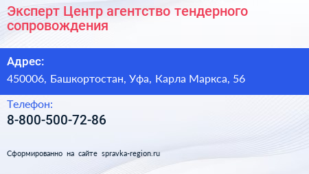 Эксперт Центр, агентство тендерного сопровождения по адресу 450006, Башкортостан, Уфа, Карла Маркса, 56 в дальнейшем Организация, размещена в следующих категориях: