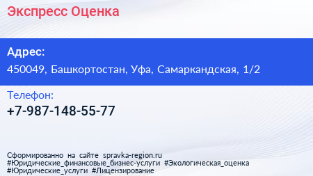 Экспресс-Оценка по адресу 450049, Башкортостан, Уфа, Самаркандская, 1/2 в дальнейшем Организация, размещена в следующих категориях: