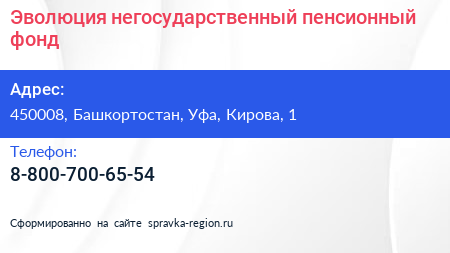 Эволюция, негосударственный пенсионный фонд по адресу 450008, Башкортостан, Уфа, Кирова, 1 в дальнейшем Организация, размещена в следующих категориях: