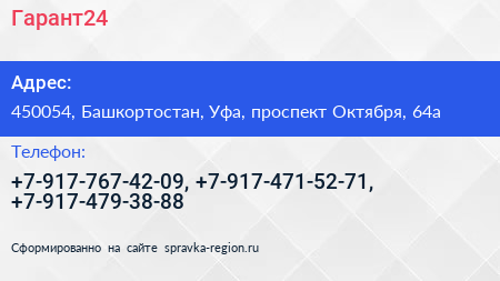 Гарант24 по адресу 450054, Башкортостан, Уфа, проспект Октября, 64а в дальнейшем Организация, размещена в следующих категориях: