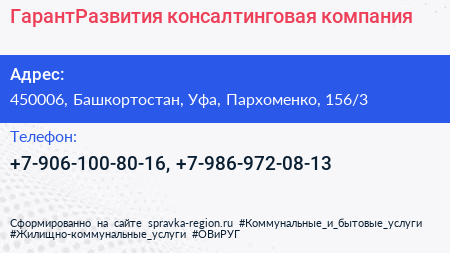 ГарантРазвития, консалтинговая компания по адресу 450006, Башкортостан, Уфа, Пархоменко, 156/3 в дальнейшем Организация, размещена в следующих категориях: