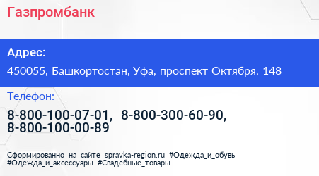 Газпромбанк по адресу 450055, Башкортостан, Уфа, проспект Октября, 148 в дальнейшем Организация, размещена в следующих категориях: