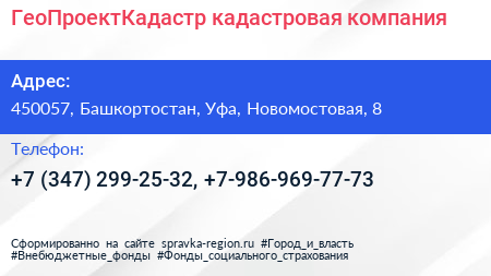 ГеоПроектКадастр, кадастровая компания по адресу 450057, Башкортостан, Уфа, Новомостовая, 8 в дальнейшем Организация, размещена в следующих категориях: