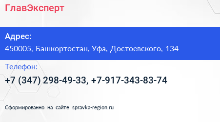 ГлавЭксперт по адресу 450005, Башкортостан, Уфа, Достоевского, 134 в дальнейшем Организация, размещена в следующих категориях: