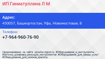 ИП Гиниатуллина Л.М. по адресу 450057, Башкортостан, Уфа, Новомостовая, 8 в дальнейшем Организация, размещена в следующих категориях:
