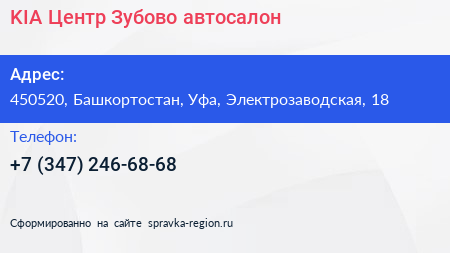 KIA Центр Зубово, автосалон по адресу 450520, Башкортостан, Уфа, Электрозаводская, 18 в дальнейшем Организация, размещена в следующих категориях: