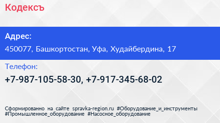 Кодексъ по адресу 450077, Башкортостан, Уфа, Худайбердина, 17 в дальнейшем Организация, размещена в следующих категориях: