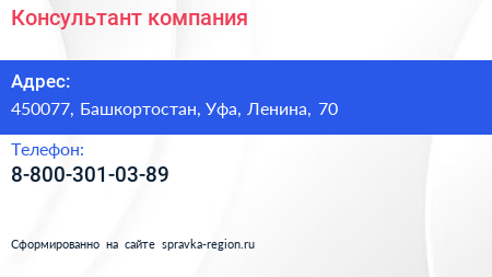 Консультант, компания по адресу 450077, Башкортостан, Уфа, Ленина, 70 в дальнейшем Организация, размещена в следующих категориях: