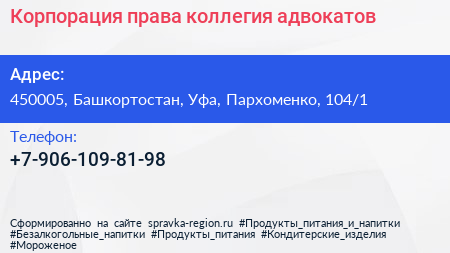 Корпорация права, коллегия адвокатов по адресу 450005, Башкортостан, Уфа, Пархоменко, 104/1 в дальнейшем Организация, размещена в следующих категориях: