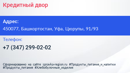 Кредитный двор по адресу 450077, Башкортостан, Уфа, Цюрупы, 91/93 в дальнейшем Организация, размещена в следующих категориях:
