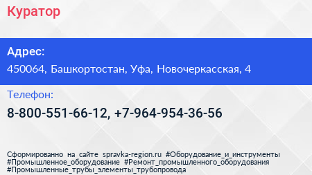 Куратор по адресу 450064, Башкортостан, Уфа, Новочеркасская, 4 в дальнейшем Организация, размещена в следующих категориях: