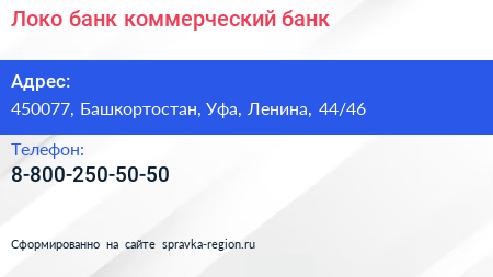 Локо-банк, коммерческий банк по адресу 450077, Башкортостан, Уфа, Ленина, 44/46 в дальнейшем Организация, размещена в следующих категориях: