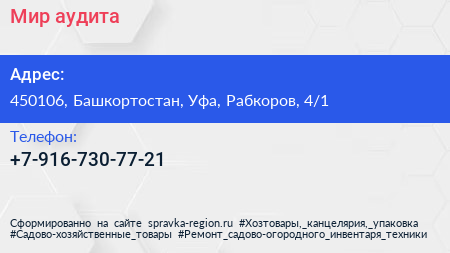 Мир аудита по адресу 450106, Башкортостан, Уфа, Рабкоров, 4/1 в дальнейшем Организация, размещена в следующих категориях: