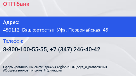 ОТП банк по адресу 450112, Башкортостан, Уфа, Первомайская, 45 в дальнейшем Организация, размещена в следующих категориях: