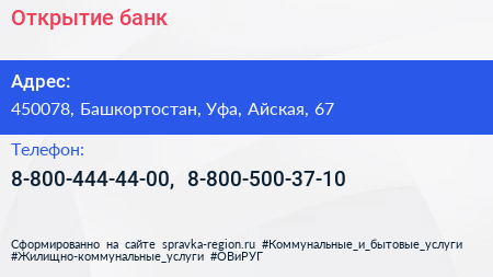 Открытие, банк по адресу 450078, Башкортостан, Уфа, Айская, 67 в дальнейшем Организация, размещена в следующих категориях: