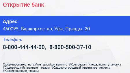 Открытие, банк по адресу 450095, Башкортостан, Уфа, Правды, 20 в дальнейшем Организация, размещена в следующих категориях: