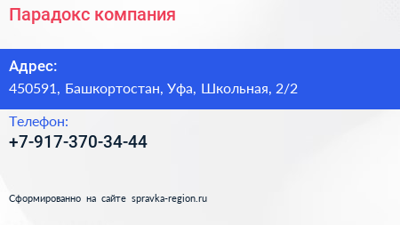 Парадокс, компания по адресу 450591, Башкортостан, Уфа, Школьная, 2/2 в дальнейшем Организация, размещена в следующих категориях: