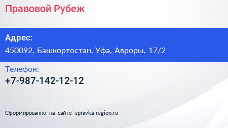 Правовой Рубеж по адресу 450092, Башкортостан, Уфа, Авроры, 17/2 в дальнейшем Организация, размещена в следующих категориях:
