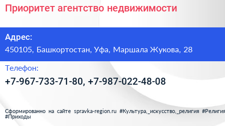 Приоритет, агентство недвижимости по адресу 450105, Башкортостан, Уфа, Маршала Жукова, 28 в дальнейшем Организация, размещена в следующих категориях: