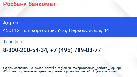 Росбанк, банкомат по адресу 450112, Башкортостан, Уфа, Первомайская, 44 в дальнейшем Организация, размещена в следующих категориях: