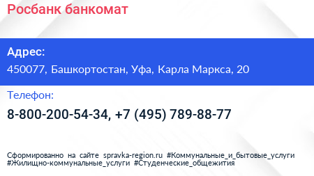 Росбанк, банкомат по адресу 450077, Башкортостан, Уфа, Карла Маркса, 20 в дальнейшем Организация, размещена в следующих категориях: