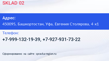 SKLAD-02 по адресу 450095, Башкортостан, Уфа, Евгения Столярова, 4 к1 в дальнейшем Организация, размещена в следующих категориях: