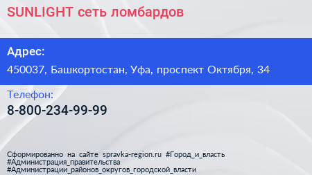 SUNLIGHT, сеть ломбардов по адресу 450037, Башкортостан, Уфа, проспект Октября, 34 в дальнейшем Организация, размещена в следующих категориях:
