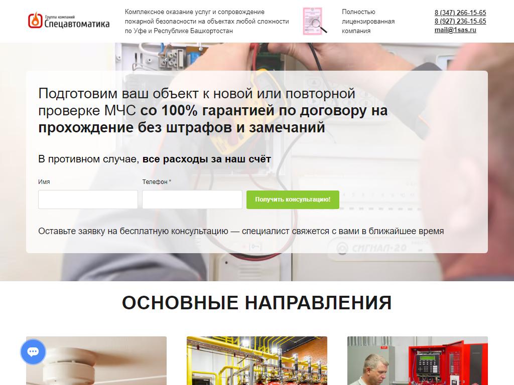 Спецавтоматика, центр услуг пожарной безопасности по адресу 450071, Башкортостан, Уфа, проспект Салавата Юлаева, 89 в дальнейшем Организация, размещена в следующих категориях: