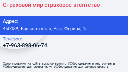 Страховой мир, страховое агентство по адресу 450039, Башкортостан, Уфа, Ферина, 1а в дальнейшем Организация, размещена в следующих категориях: