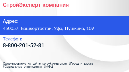 СтройЭксперт, компания по адресу 450057, Башкортостан, Уфа, Пушкина, 109 в дальнейшем Организация, размещена в следующих категориях: