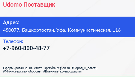 Udomo.Поставщик по адресу 450077, Башкортостан, Уфа, Коммунистическая, 116 в дальнейшем Организация, размещена в следующих категориях: