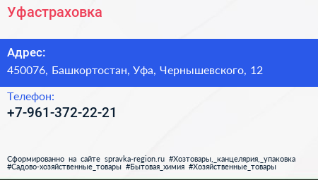 Уфастраховка по адресу 450076, Башкортостан, Уфа, Чернышевского, 12 в дальнейшем Организация, размещена в следующих категориях:
