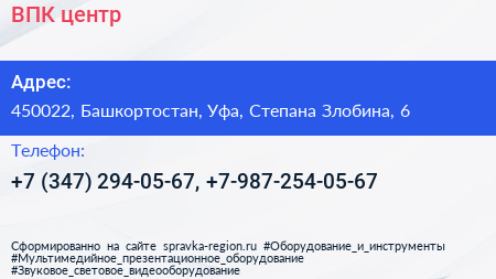 ВПК, центр по адресу 450022, Башкортостан, Уфа, Степана Злобина, 6 в дальнейшем Организация, размещена в следующих категориях:
