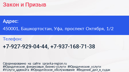 Закон и Призыв по адресу 450001, Башкортостан, Уфа, проспект Октября, 1/2 в дальнейшем Организация, размещена в следующих категориях: