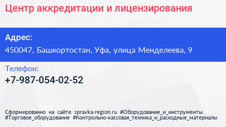 Центр аккредитации и лицензирования по адресу 450047, Башкортостан, Уфа, улица Менделеева, 9 в дальнейшем Организация, размещена в следующих категориях: