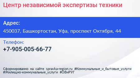 Центр независимой экспертизы техники по адресу 450037, Башкортостан, Уфа, проспект Октября, 44 в дальнейшем Организация, размещена в следующих категориях: